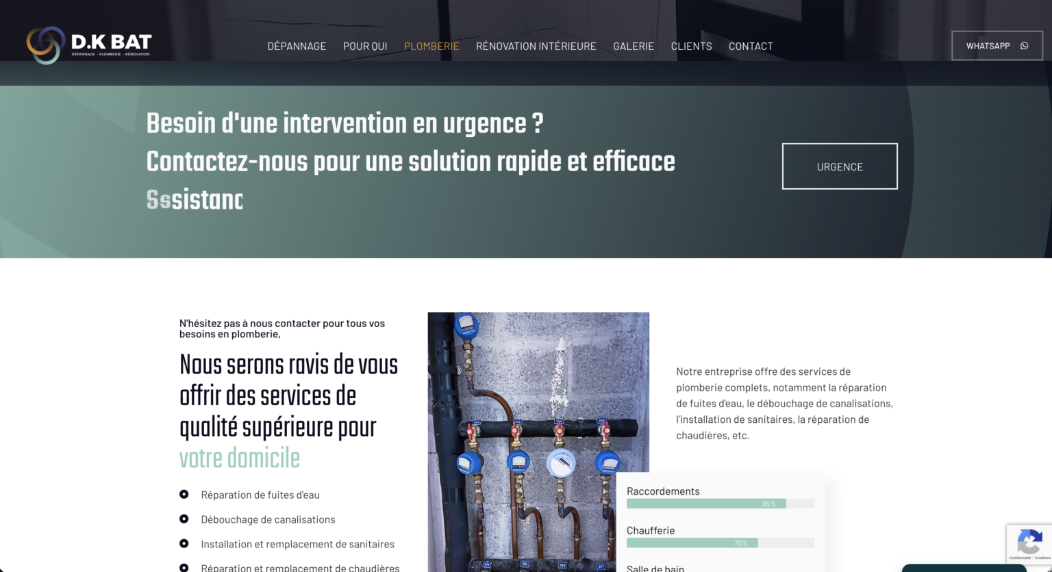 Le design a été volontairement pensé pour rester accessible et fonctionnel, en évitant une esthétique trop premium qui ne correspondrait pas à l’activité de dépannage et de rénovation.