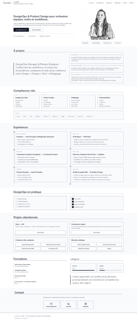 Compétences : DesignOps · Design System · Design Workflow Management · Documentation & Process · Figma (avancé) · Notion (organisation & documentation)