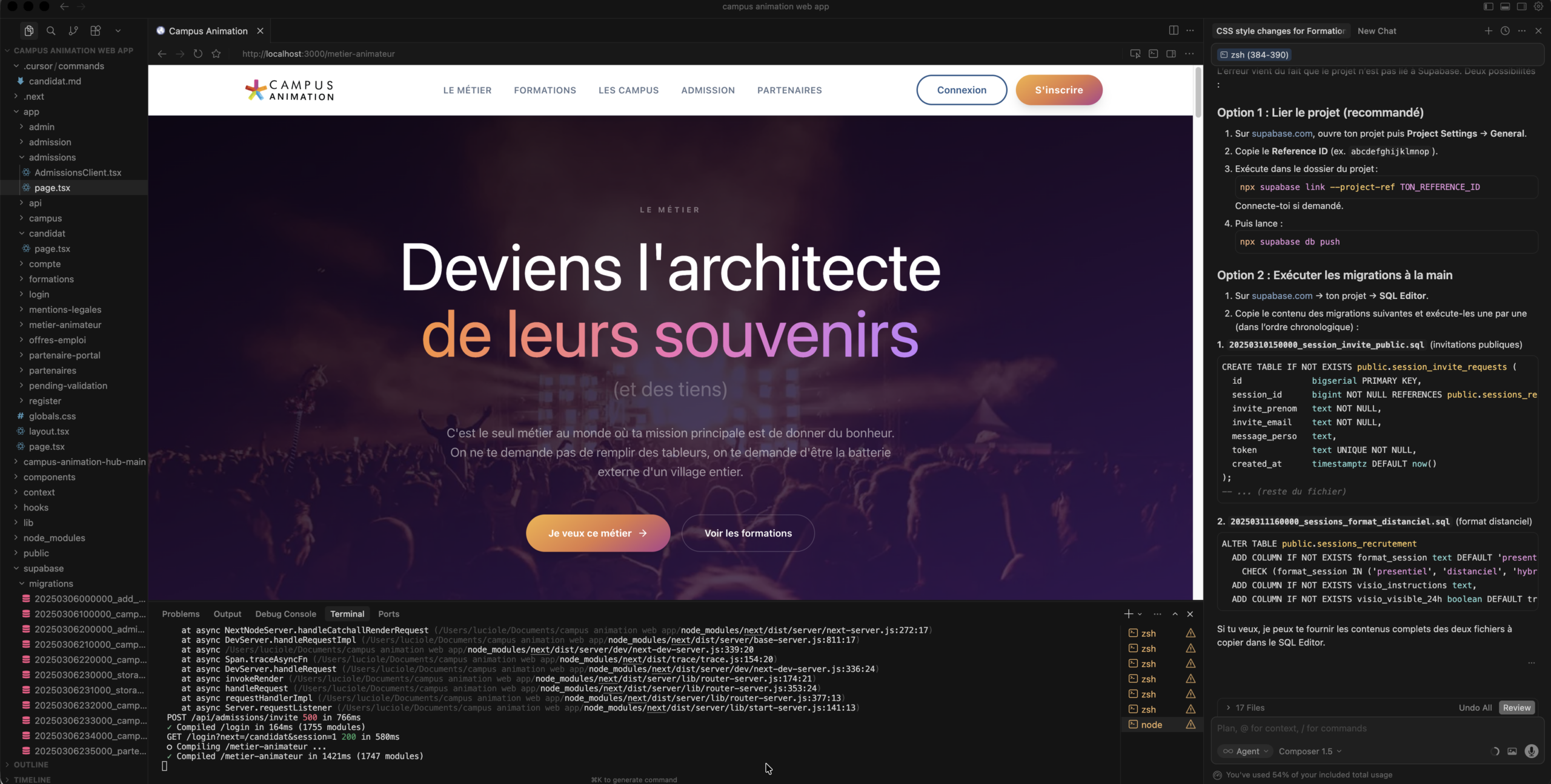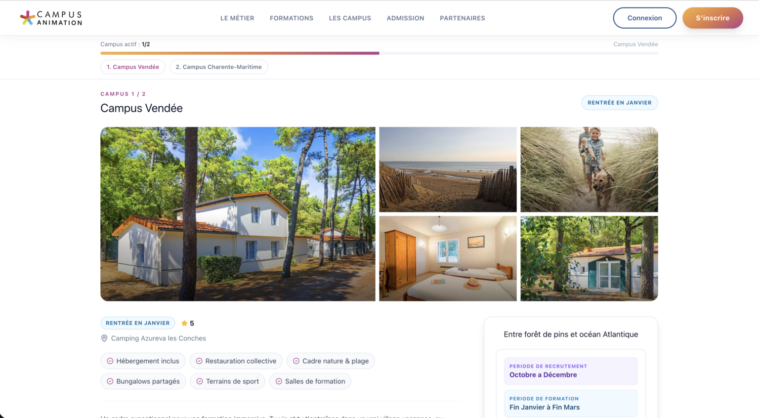 L’objectif était de permettre à l’équipe Campus Animation de gérer l’ensemble du processus de recrutement depuis un dashboard administrateur centralisé, tout en conservant un site public dynamique et facile à mettre à jour.